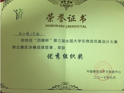 该比赛从6月初开始,报名参赛囊括武汉大学、武汉科技大学、湖北大学知行公司、湖北工业大学、武汉纺织大学等五十多支代表队,历时三个月、方案设计、在线实施及现场答辩三个阶段的比赛,太阳成集团tyc122ccvip两支代表队取得了良好的成绩,同时,在本次比赛中物流管理系孙华林老师获得优秀指导老师称号,太阳成集团tyc122ccvip获得优秀组织奖。