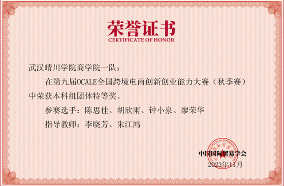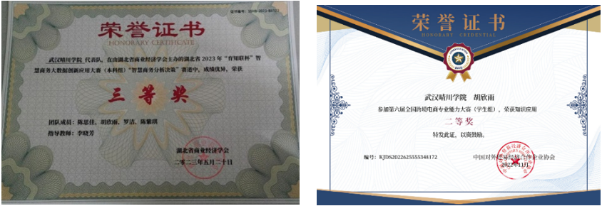 在学科竞赛的舞台上,她始终保持挑战自我的勇气与开拓创新的锐意,深耕跨境电商、数字贸易、创新创业等领域,不仅与团队成员共同获得全国跨境电商大赛特等奖,更凭借出色表现包揽“互联网+”“数字贸易”等多项赛事荣誉。这些成绩的背后,是她持之以恒的专注投入与全力以赴的奋斗拼搏。她用实际行动诠释了实干精神,不断激励着身边的同学积极进取,在青春赛道上勇于超越自我。
