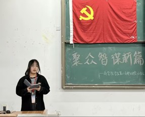 随后,进入组员工作内容汇报环节。宣传记录组的肖飞、刘海洋、邓少帅三位同学依次上台汇报了三月份的工作情况,详细介绍了小组在近期活动中的工作成果与不足,并提出相应改进措施。