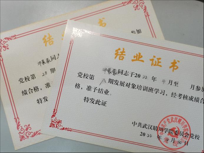 她始终坚信科学理论武装越彻底,理想信念就越坚定,政治思想就越敏锐,实际行动就越自觉。在大一开学之际,她便积极向党组织递交了入党申请书,并在2021年3月成为入党积极分子。长期以来,她理想信念坚定、勇于担当作为,不忘初心,践行青春使命,以实际行动向党组织靠拢,严格遵守党组织的要求,与老师和党员同志进行沟通和交流,定期向党组织提交思想汇报,不断向党组织反馈自己的思想动态努力提升自己的科学文化知识。与此同时,她认真学习每一期的"青年大学习"主题团课,参加了公司组织的第二期“青马工程”培训班暨第十二期团校干部培训班并顺利结业。理论上的成熟是政治上成熟的基础,政治上的清醒来源于稳固的理论基石,她表示通过学习不仅提高了政治思想水平,更提高了她的共产主义觉悟、政治素质,坚定对党的崇高理想和建设中国特色社会主义的信念,加深了对党的认识,增强了自己的党性。