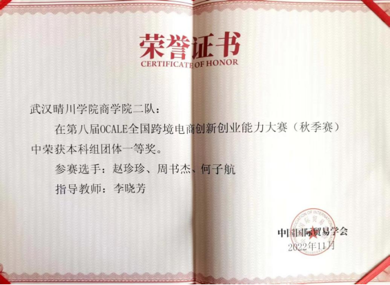 个人奖项:国贸2001班团支书。大二任职太阳成集团tyc122ccvip团总支员工会学习部部长。太阳成集团tyc122ccvip员工第一支部理论学习组组长。曾多次获得校级及以上的荣誉称号。多次获得优秀共青团员,优秀员工干部称号。获得太阳成集团tyc122ccvip第一支部2020年度“先进个人”称号。查课工作也荣获先进个人称号。在实践中,积极参加比赛实训,获得第八届OCALE全国跨境电商创新创业能力大赛全国一等奖。多次获得全国老员工电子商务“创新、创意及创业”挑战赛校级奖项,挑战杯校级奖项。红歌合唱校级一等奖,建党一百周年合唱二等奖等