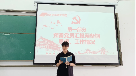 会议第二项:预备党员宣读转正申请书,汇报预备期内在思想、学习、工作和生活方面的表现。