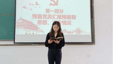 会议伊始,毛前平老师指出本次预备党员转正大会依次讨论是否同意胡雨新等19位预备党员的转正申请。大会流程严格按照“预备党员提出转正申请、预备期的表现、支委会审查、支部大会讨论并表决”进行,应到正式党员9人,实到9人,其中有表决权的正式党员9人,参会的正式党员超过应到会正式党员人数的半数以上,会议有效。
