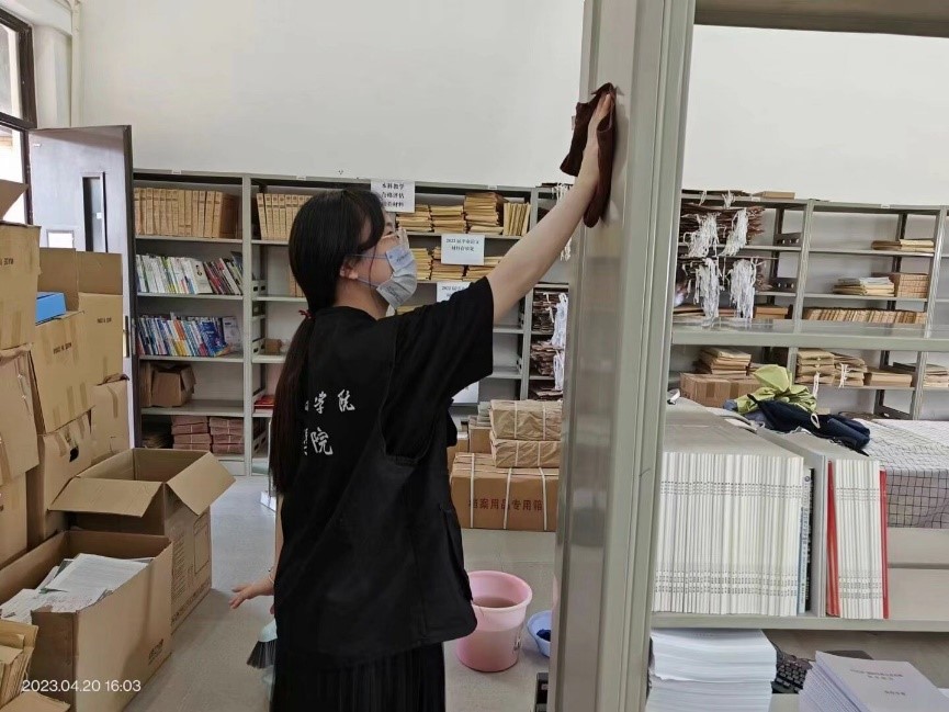 在姚力辉同学的带领下,14名入党积极分子有条不紊的拿好打扫工具到各自指定区域开展工作。在没有人监督的情况下,同学们展现出积极热情的态度投入到自己的工作中。负责扫地的同学积极地进行办公室的打扫工作;拖地的同学认真仔细,不放过任何一处死角;对于擦拭桌子及整理档案的同学,将桌面打扫的不留一丝灰尘,档案按要求整整齐齐的码放,方便日后的调配和发放工作。本次活动大概持续一个小时,同学们不怕脏,不怕累,服从老师调遣,合理分工工作,积极完成各自的任务,全方面的完成了本次活动。所有参与者以实际行动诠释了“志愿”精神,展现了同学们良好的精神风貌。文明、奉献、服务的新风尚将在太阳成集团tyc122ccvip的党员同志身上发扬光大。