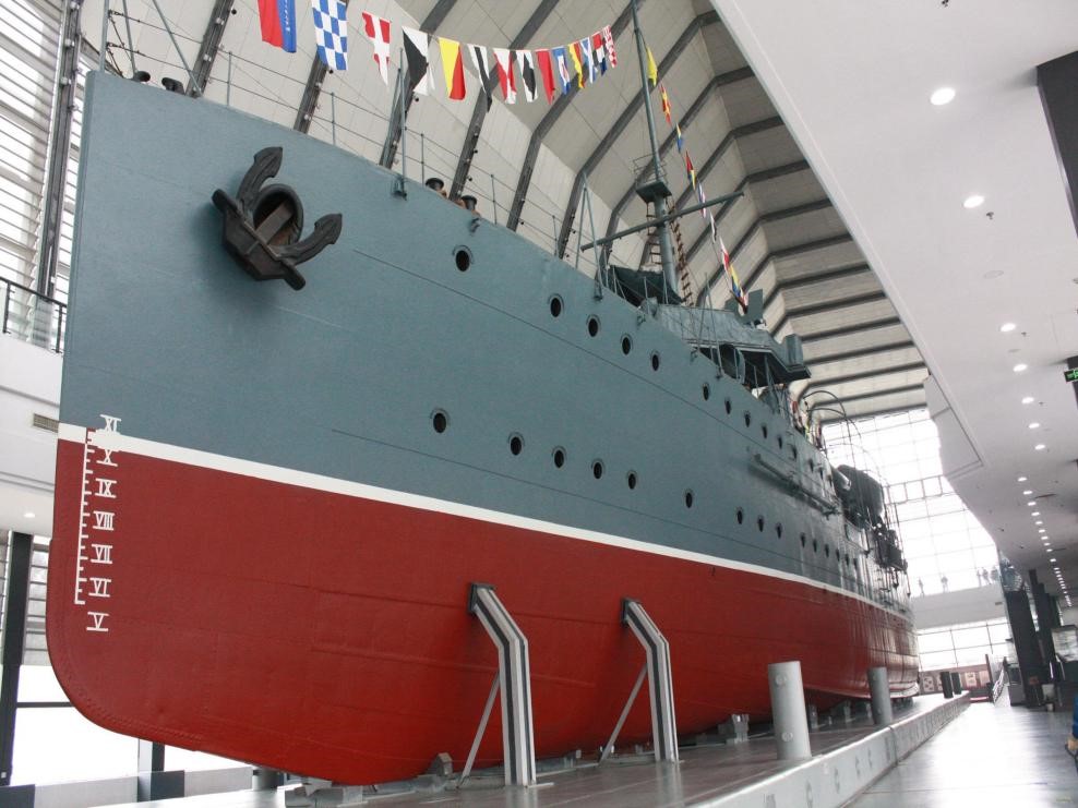 (注释:舰体陈列厅中的中山舰)