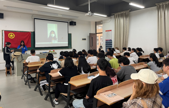 团课伊始,由主持人以及组织部成员为同学们播放从参与团课学习的班级上交的25个作品中筛选的10个优秀视频。每个视频都围绕“我为家乡代言”和“红色故事我来讲”两个主题展开。在视频中,同学们向大家介绍了自己家乡的美景,还宣传了家乡当地的特产,有些地方也凭借悠久的历史文化和闻名的人文景观成为了旅游景点……大家十分投入地观看视频,情不自禁地交流起各自的家乡,对家乡的自豪和热爱溢出了眉眼。展示的10个优秀视频作品中不乏讲述红色革命故事的。无论在哪个时代,提及前辈的事迹,传承先辈的精神,都是中华文化延续的见证。或许他们的生命早已结束,但是他们的功绩将永远被历史记住,时代的洪流不会将他们的光辉冲散,在崭新的明天,一批又一批的青年会接住时代交付的任务,完成当代人的使命。