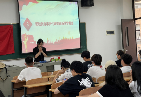 团课持续推进,接下来由团校优秀学员代表胡雨新同学发言。胡雨新同学首先向同学们介绍中国共产主义青年团的地位及作用,希望同学们都能够珍惜机会,在学习团课的过程中,能够将知识学以致用,全面发展自己。随后她借用梁启超老先生的《少年中国说》中的话,将少年比作朝阳,比作乳虎,比作泼兰地酒,比作春前之草,无不透露着年轻一代的朝气蓬勃。胡雨新同学以此篇文章和大家共勉,希望在场的同学要不断的提高自己,不断地加强自身思想道德修养,不断地增强政治意识、组织意识和模范意识,做一名新时期的有为青年。最后胡雨新同学在次向各位同学郑重承诺自己也将以身作则,并预祝本次团校培训取得圆满成功!