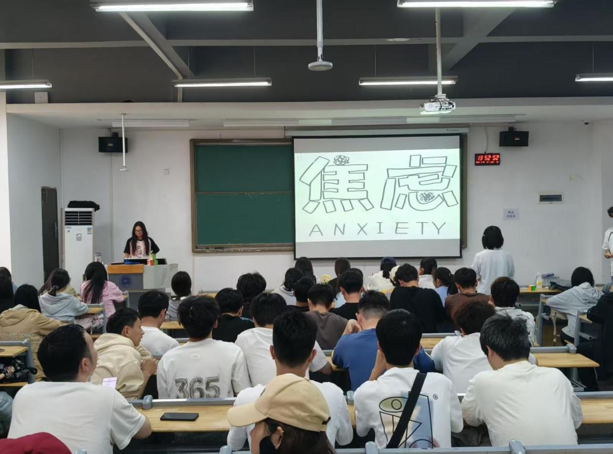 活动伊始,一场聚焦焦虑主题的讲座在教室拉开帷幕。屏幕上醒目的“焦虑”二字,瞬间抓住了同学们的目光。“晴心乐园”心理工作站的工作人员借有趣的短视频,从生存焦虑、社会焦虑、容貌焦虑、认知焦虑等多维度,帮助同学们了解焦虑的根源与机制,并让大家客观认识焦虑无处不在。
